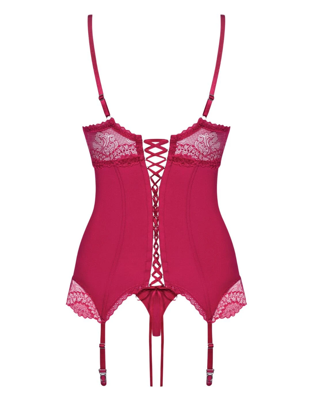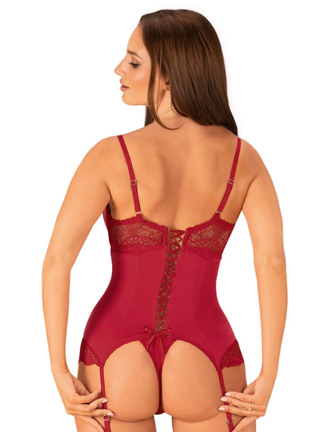 Obsessive brings you undeniably seductive sets with their Rosalyne collection this season. This 2-piece set includes both a beautiful corset and thong so you can complete this sensual look. The corset features a full cup neckline that flatters and accentuates your bust with padding and underwiring for a look you can wear with confidence. Features a decorative bow detailing on the centre bust for a feminine flair. The included thong is cut to a classic minimal rear coverage and a seductive low-rise waist.