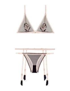 - Sexy 3-piece set: bra, brief, suspender belt