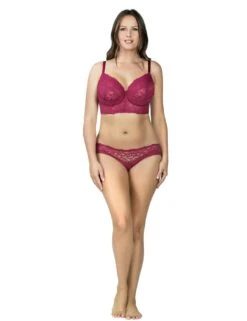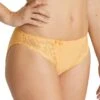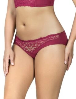 Complete the look with this everyday lace brief from Parfait lingerie. This brief is a bikini style which means it gives slightly less coverage than a regular brief. The waist sits at the hips and the legs rise slightly at the back. The front is decorated with a seductive lace but the back is a smooth nylon. This brief is comfy yet feminine, ideal for everyday wear.