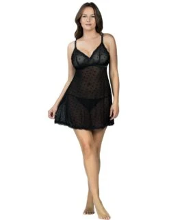 For that ultimate romantic but sexy look in the bedroom, try on this Lily babydoll and thong set from Parfait. The mesh material is decorated with charming little hearts all over, giving you a feminine look. The deep plunging neckline is combined with the short length of the babydoll and, together with the semi-transparency of the material, will keep all the attention on your tempting curves. The cups are lined with stretch tricot and are underwired for the ultimate comfortable fit, with the adjustable shoulder straps giving you the freedom to adapt this piece to your best fit. To finish off this stunning design, the babydoll is decorated with scalloped lace trimming on the bottom and the neckline.