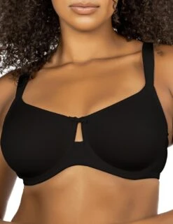 This Erika bra from Parfait provides the ultimate comfortable solution to your everyday lingerie choice. The underwired cups are moulded for that perfectly smooth look – even under tight-fitting t-shirts. The side sling is hidden inside the cups which gives you shape and added support. The smooth and seamless material is incredibly comfortable to wear, feeling almost like a second skin. Adjustable shoulder straps and traditional hook and eye back fastening allow you to adapt this bra to your best fit. As a finishing detail, this bra features a keyhole opening on the bridge for a subtle sexy touch.