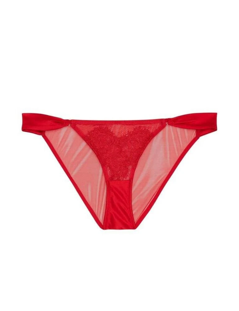 Experience true confidence wearing sexy yet flattering boudoir lingerie by Playful Promises. The Annelise collection is designed with intricate lace upon sheer mesh and adorned with satin detailing. Offering moderate to cheeky rear coverage, this sultry Brazilian brief will surely add spice to you evenings.