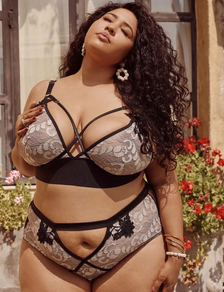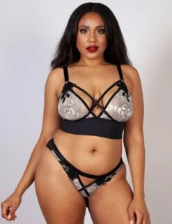 The Gabi Fresh Renee bra by Playful Promises is comfortable and flirty. The design is crafted from metallic embroidered lace and decorated with contrast over-bust picot strapping along with floral lace motifs. Wireless cups allow for a natural shape and comfort along with the wide elastic under-bust. The shoulder straps are fully adjustable and the bra fastens with a hook and eye closure to the rear. Update your boudoir lingerie collection with this fabulous design.