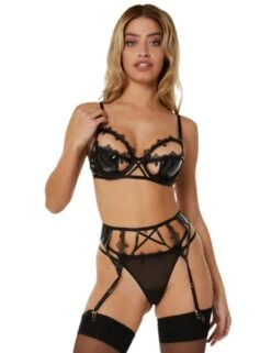 No sexy lingerie look is complete without a suspender and this Brea cut out PVC and lace trim suspender by Playful Promises is not one to miss out on! This suspender is made from PVC fabric with delicate lace detailing and a centre criss cross section. It closes at the rear with a hook and eye closure and has adjustable straps allowing you to create a perfect fit.