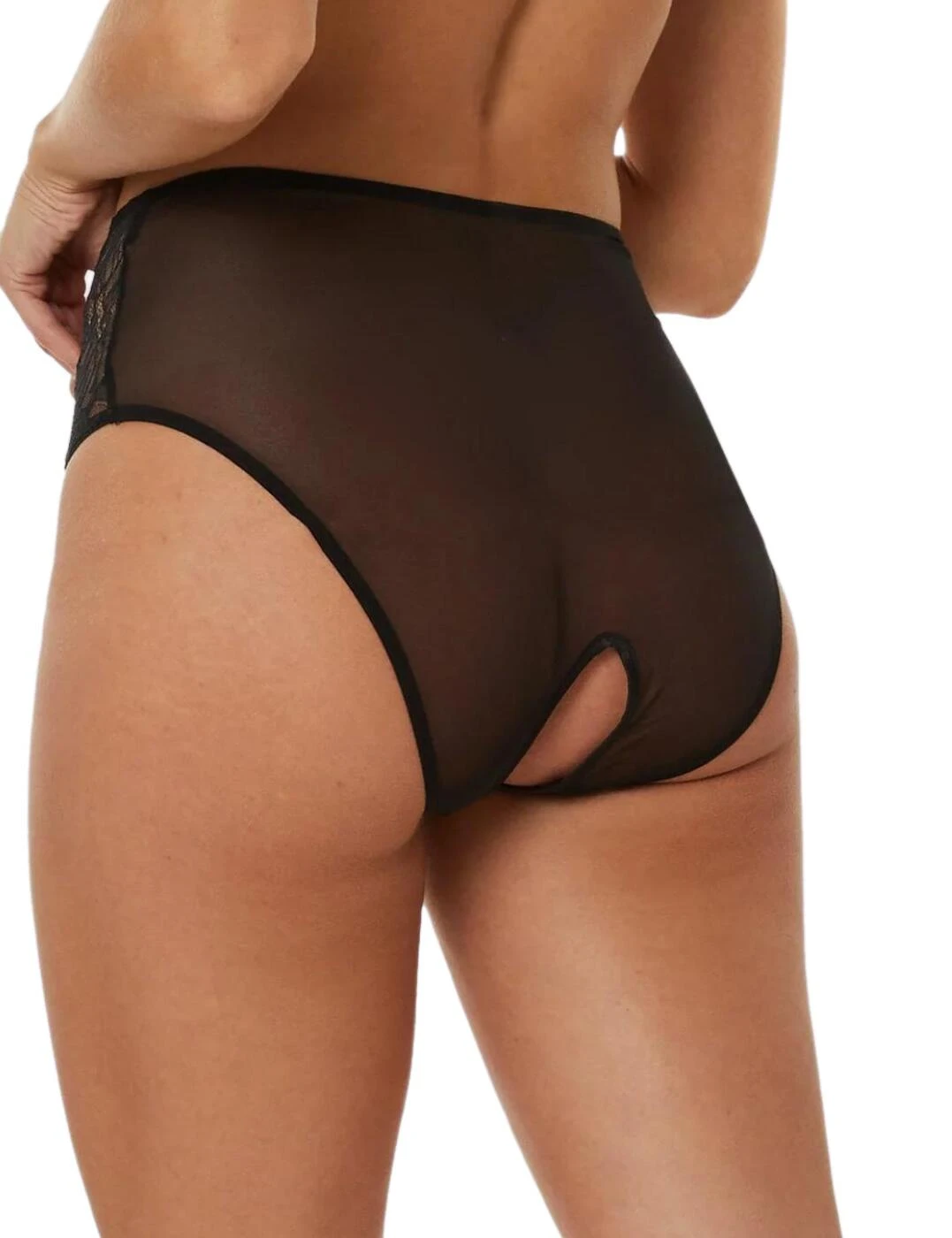 Playful Promises’ Fallon crotchless briefs are sensual and flirty, with a high-rise waist and full rear coverage giving a comfortable, feminine feel. The sensual lace details over soft sheer mesh are playful and chic, with a classic bow embellishment on the front. The crotchless design is cheeky and fun, offering a flawless, unique look. The waistband is elasticated for a snug, secure fit that will stay in place no matter what.