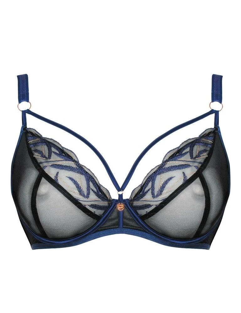 Introducing the new Submission range, by Scantilly. Featuring semi-sheer fabric and whip-inspired feathery embroidery, this stunning bra is exactly what you need to spice up your nights in. This bra is underwired to offer great uplift and support where you need it most. The bra is non-padded for a natural look and the straps are adjustable for a perfect fit. This bra fastens at the back with a traditional hook and eye closure.