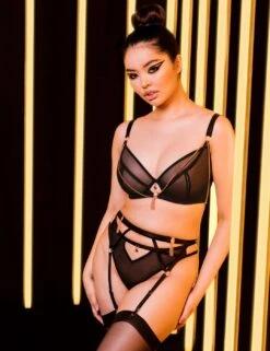Complete the ultimate seductive look with the Scantilly by Curvy Kate Unchained suspender belt. This suspender belt perfectly compliments other products within this range. The detail throughout this suspender belt makes it extremely unique and distinctive, if you’re looking to turn heads, this is going to do exactly that. Made with premium mesh fabric and detailed with rose gold jewels, this suspender belt is truly stunning. To wear the suspender belt, you simply fasten the rose gold clasp on the back.