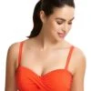 This bikini top from Panache’s Catarina range features a bold contrast design on the upper cup to perfectly frame your bust and add a chic touch. The cups are underwired for support and non-padded, giving a natural, smooth look that is comfortable and feminine. The straps are adjustable to ensure you can get the perfect fit and the rear clip fastening will stay secure and snug no matter what you are doing. Made from chlorine-resistant material, this bikini top will last you for many adventures to come, making it the perfect addition to your swimwear collection.