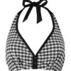 Panache’s Samara halterneck bikini top is unique and bold, with a contrasting print on the cups giving a contemporary look. The cups are underwired for support and non-padded giving a smooth, natural shape to your bust. The halterneck design allows the length to be adjusted to fit you perfectly, and the rear clip fastening will stay secure no matter what you are doing. This bikini top features branded metallic tag to add a chic, classy touch.