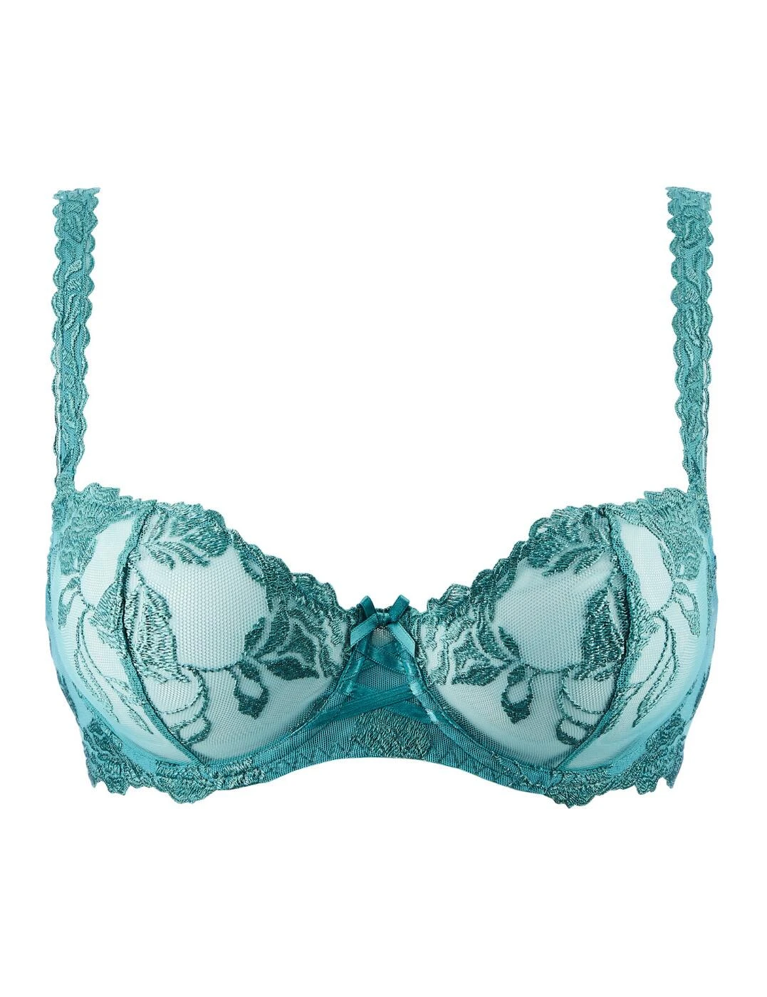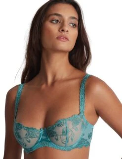 Upgrade your outfits with Aubade’s premium Softessence collection. The half-cup bra is a perfect staple to add to your wardrobe, wearable every day while still giving you that sexy flair. Featuring a flower-embroidered design which feels like velvet and soft tulle for teasing transparency creating a feminine flirty look. The cups are designed to highlight the cleavage with the underwiring but overall still stay comfortable from the no padding and a wider back. Tailor this bra to you by adjusting the shoulder straps and hook and eye closure to your preference. Pair with coordinating items also found in the Softessence range to complete the look.