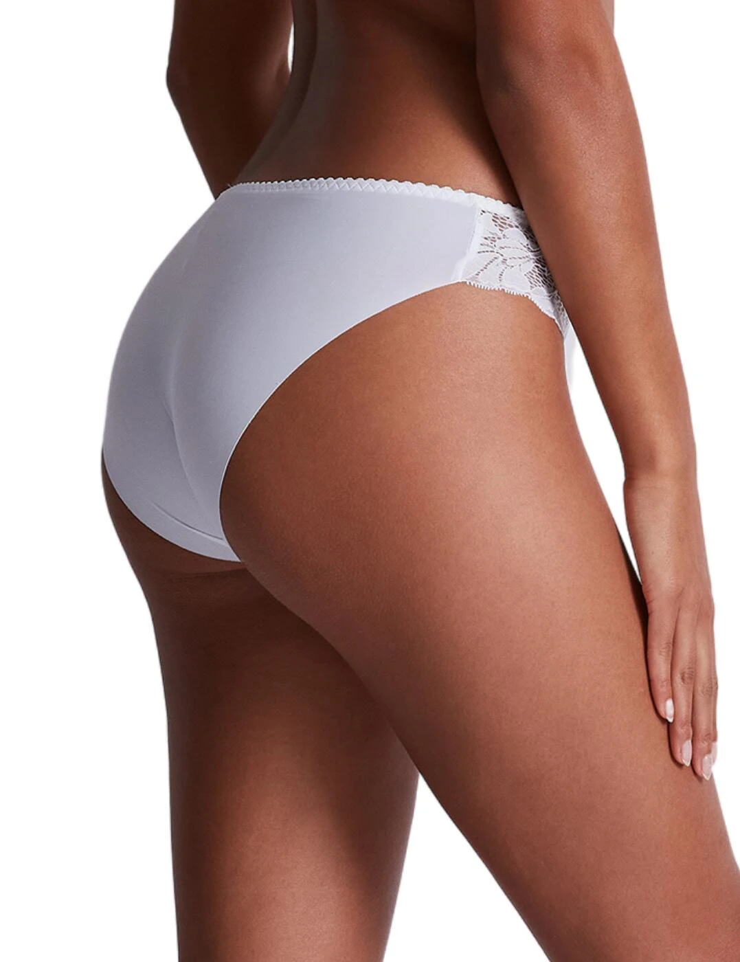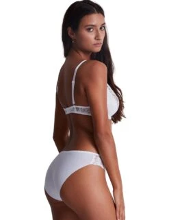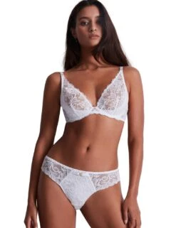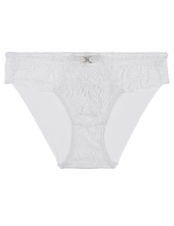 Aubade’s luxurious Mon Bijou line introduces this stunning Brazilian brief perfect for your everyday lingerie collection. Featuring a moderate opaque rear coverage and a mid-rise waist for utmost comfort and modesty while still boasting a sexy semi-sheer lace. To finish off this look a charm adorns the centre front of the brief for a feminine feel. Snap up the matching available coordinates from Aubade’s Mon Bijou range.